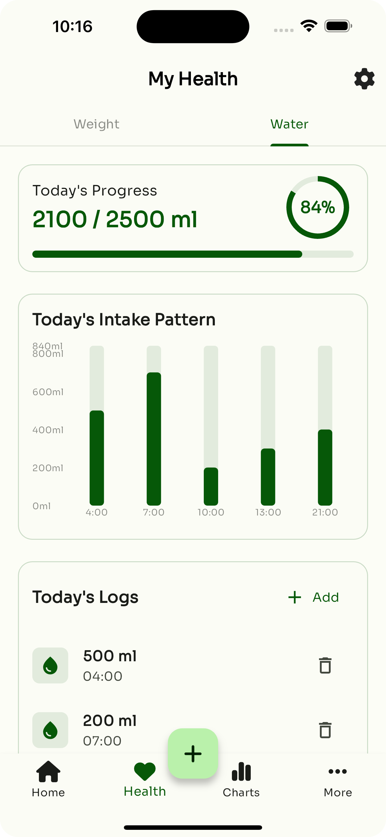 Watch your weight loss journey unfold with clear, easy-to-read charts. See your progress over weeks and months, so you stay motivated even when daily fluctuations try to discourage you.